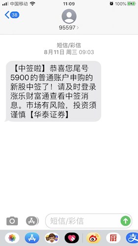 今年第一签 居然华泰不发短信恭喜我中签了 虽说中签如中刀
