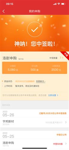 $洛耐申购(SH787119)$我也中了一签