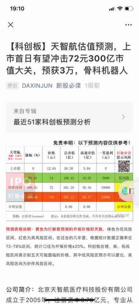 【科创板】天智航估值预测,上市首日有望冲击72元300亿市值大关,预获3万,骨科机器人