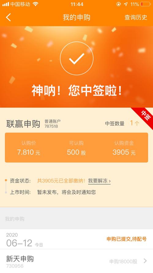 连续两天中签两只股票:联赢申购和帝科股份,真的非常幸运,有点小激动。恭祝大家发财!