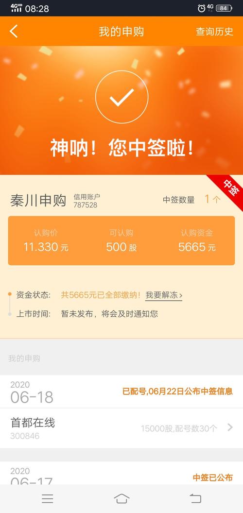 明天中签的复张要上市开盘了,今天又中这个,感谢!谢恩!