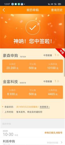 2020年中的第一签,还是个科创板的,憧憬一下。