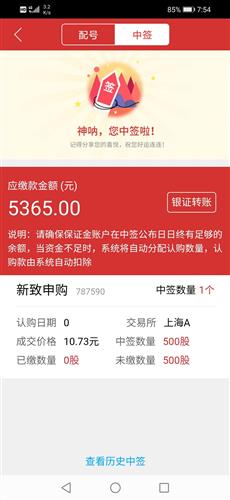 中签500股