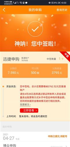 中签啦