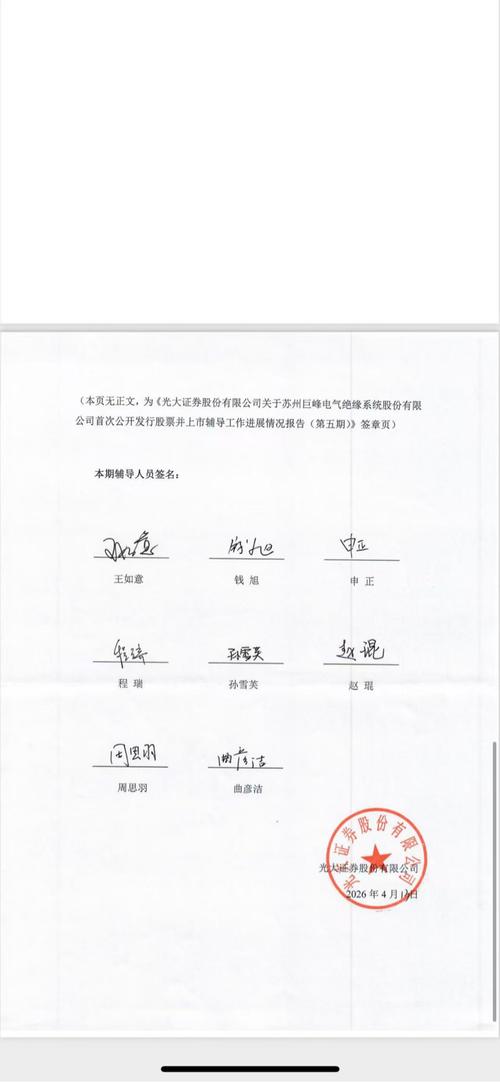 公告 关于苏州巨峰电气绝缘系统股份有限公司向不特定合格投资者公开发行股票并在北京证券交易所上市辅导工作进展报告(第五期)