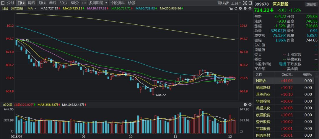 一、次新板块概述今天深次新股指数下跌-1.32%,成交金额75.12亿;近端次新指数下跌-1.83%,成交金额59.76亿。本来昨天上涨趋势良好,可是昨晚美股暴跌800点,上证报又发布文章摧残科创板块,导致今天指数大幅低开。但是盘中走势比想象的强,低开高走,创业板甚至顽强翻红。即便如此,依然为市场中的投资者感到悲哀,就像现在疯传的投资者举报上证报的音频中所说:市场监管一直没有明确的标准,翻手为云...