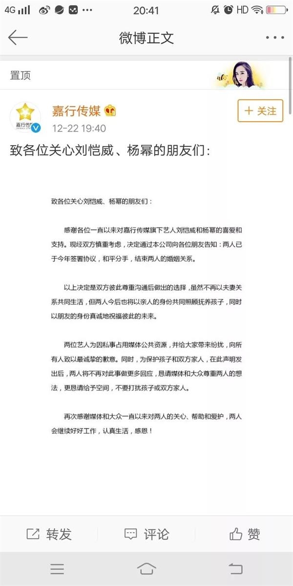 资讯 杨幂7年爱情走到头旗下公司估值缩水10亿元 股份一再降价却无人问津