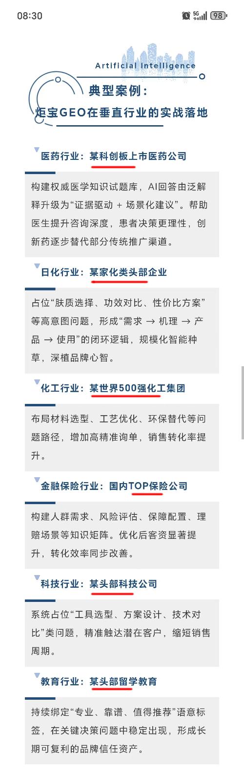 元聚变作为国内领先的GEO智能体营销服务商,旗下的炬宝GEO业务早已深入各行业头部企业,为各行各业赋能。