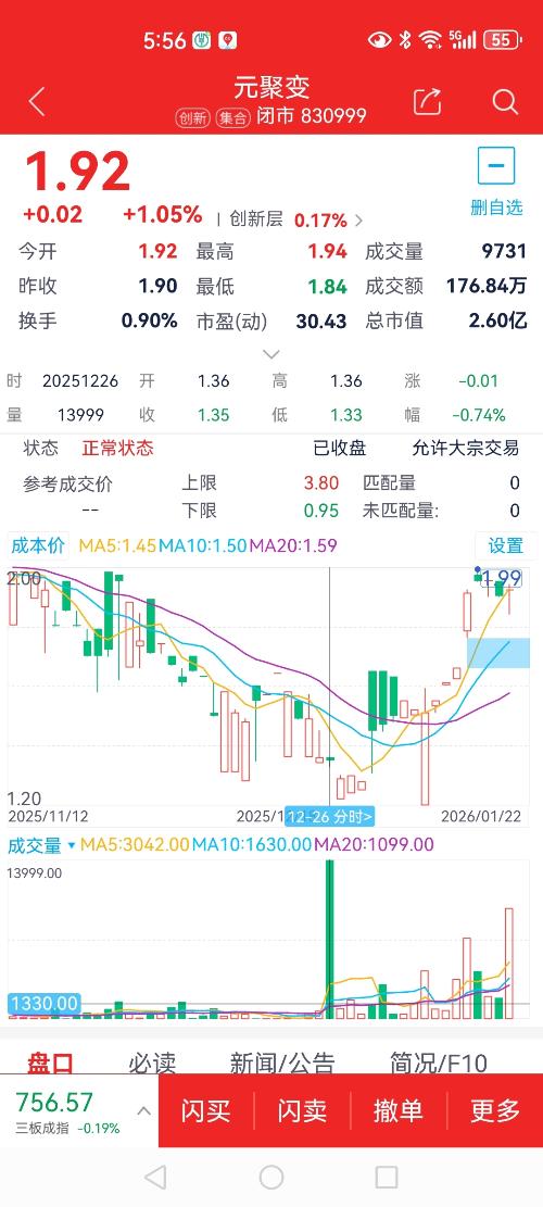 $元聚变(SZ830999)$ 12月26日大宗成交100万股,成交价1.36元。今天又大宗成交83.5万股,成交价1.92元。 成交价越来越高了!