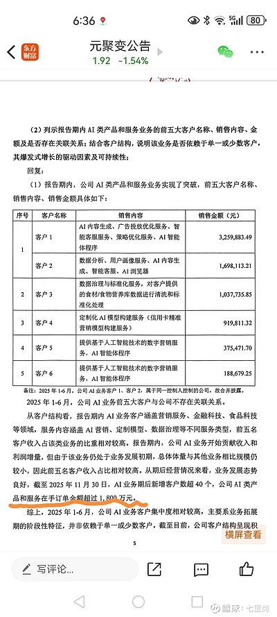$元聚变(SZ830999)$ 元聚变Ai产品井喷式发展,前景一片光明! 今天晚上,元聚变回复北交所对其半年报问询https://np-info.eastmoney.com/wap/notice/?referrer=appShare&infocode=AN202601291818545295 有以下闪光点:第一,元聚变从期后经营情况来看,业务发展态势良好,截至2025年11月30日,AI业务期后新...