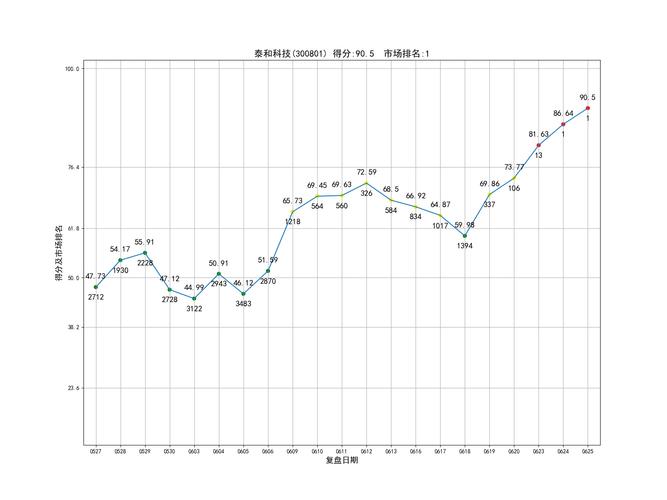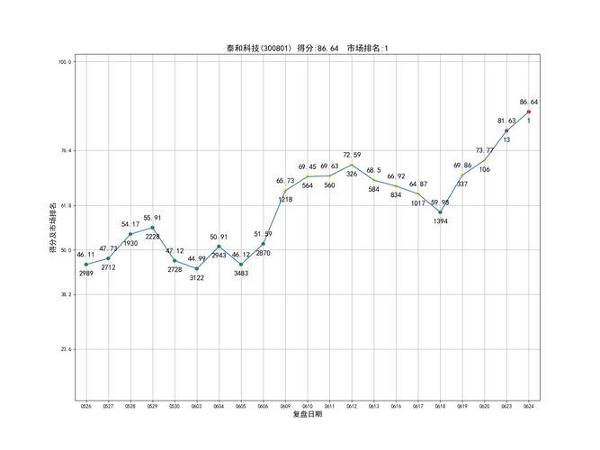 在当今股市中,面对5000多只股票,人工复盘已变得不切实际。作者通过先进的机器数据分析,专注于技术选股模型的研究与展示,旨在为有需求的股友提供高效的选股参考。请注意,仅用于技术模型展示,不涉及任何股票买卖推荐。助您在股海中精准淘金,轻松把握投资机会! 一、总分前21名平均分(看大势) 二、总分排名前21名 $泰和股份(SZ831137)$泰和科技、$诺德股份(SH600110)$诺德股份、$联迪信息(SZ839790)$...