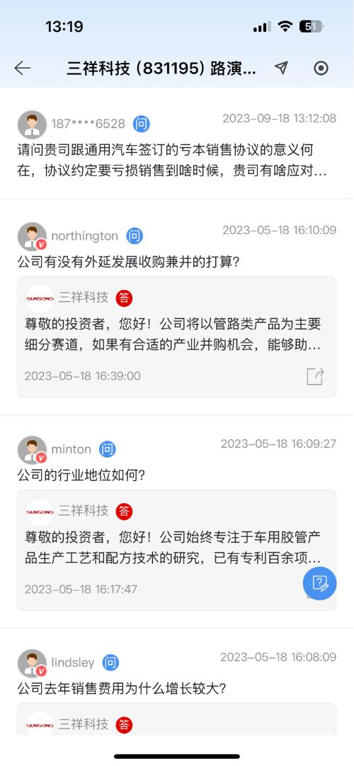 $三祥科技(SZ831195)$ 一家满嘴跑火车的公司嘴上说加强与投资者互动实际上已经2年多没有搭理过投资者提问