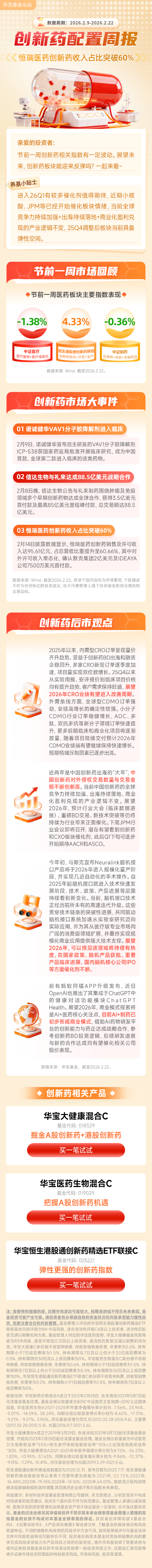华宝大健康混合A(OTCFUND|006881) 华宝大健康混合C(OTCFUND|018529) 华宝医药生物混合A(OTCFUND|240020) 华宝医药生物混合C(OTCFUND|019029) 华宝恒生港股通创新药精选ETF发起式联接A(OTCFUND|025220) 华宝恒生港股通创新药精选ETF发起式联接C(OTCFUND|025221)
