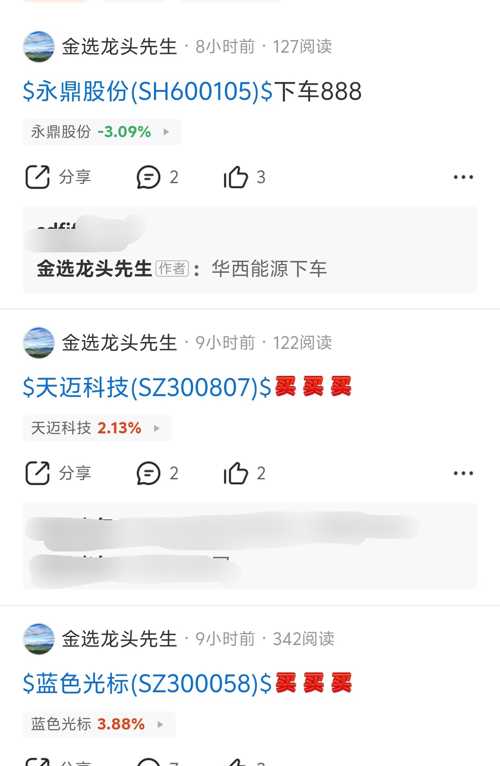 大家晚上好:金选持有个股,深科技,蓝色光标,天迈科技。永鼎股份,华新能源己出局,祝留下的一路长虹。$永鼎股份(SH600105)$$华西能源(SZ002630)$$天迈科技(SZ831392)$