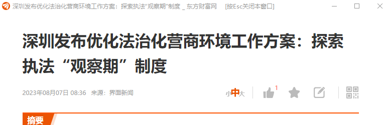 深圳发布优化法治化营商环境工作方案:探索执法“观察期”制度附评 利好企业家