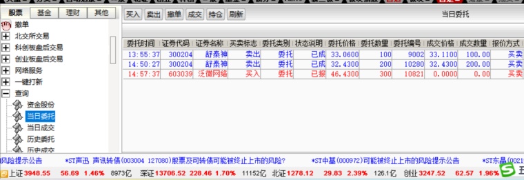 泛微网络今天在竟价时居然没有买入,明明挂高了5分钱,太难了; 300204舒泰神,,今天早高涨到17%,我以前能拉涨停的,尾盘还掉下来了, 今天盘中入选了五个股,英特科技,邵阳液压,通力科技,云赛智联,泛微网络,从强势来看泛微网络,明天估计会有一波