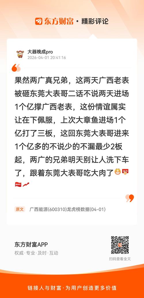 我在《广西能源(600310)龙虎榜数据(04-01)》的评论获得了大家的关注。