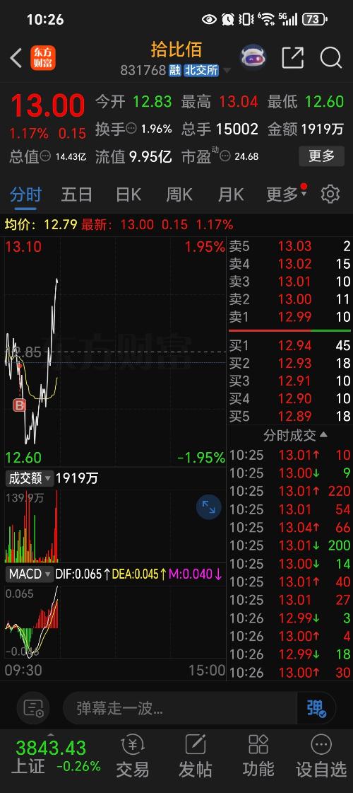 $拾比佰(SZ831768)$12.75买点玩玩,应该会有反弹