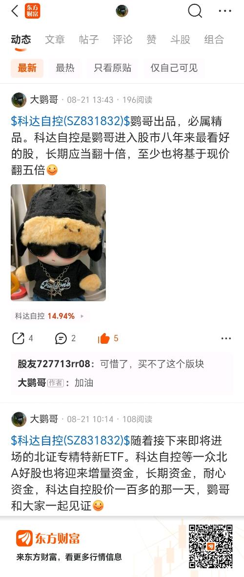 $科达自控(SZ831832)$新代码变更了会不会涨一波