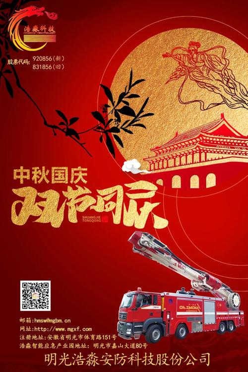 庆盛世华诞,迎金秋满月 国之华诞逢中秋,双节同庆喜上头。 值此双节同贺之际,浩淼科技 祝福伟大的祖国:国泰民安,繁荣昌盛; 祝福各位领导:双节快乐,阖家幸福,万事顺意,吉祥安康! END 扫码关注我们 邮箱:hmsw@mghm.cn 电话:0550-8090112 注册地址:安徽省明光市体育路151号 浩淼智能应急产业园地址:安徽省明光市嘉山大道80号 图文来源:明光浩淼安防科技股份公司 审核:倪...