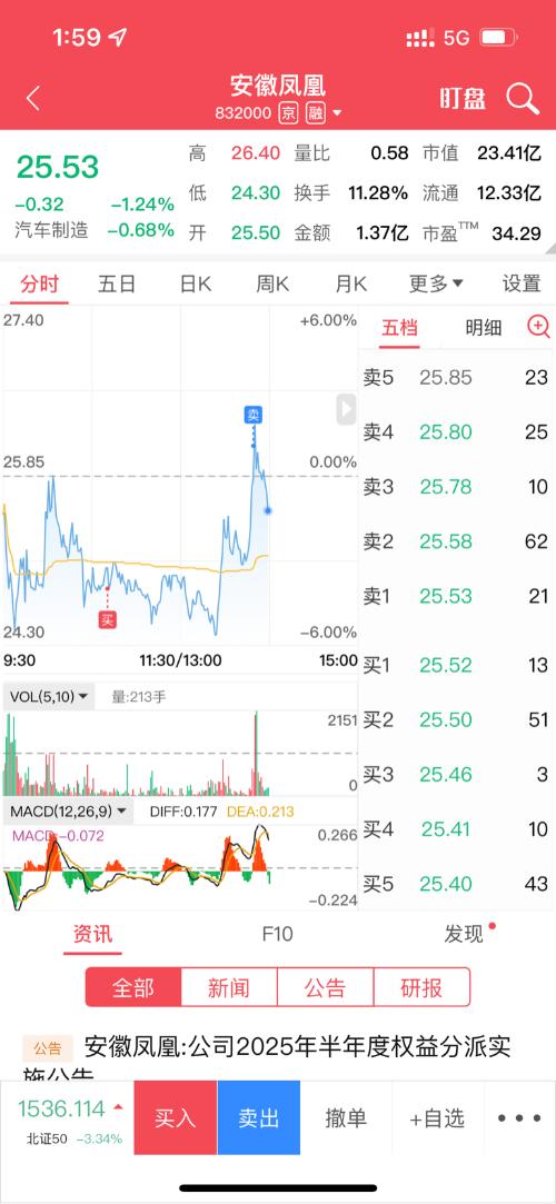 $安徽凤凰(SZ832000)$典中典之冲高回落