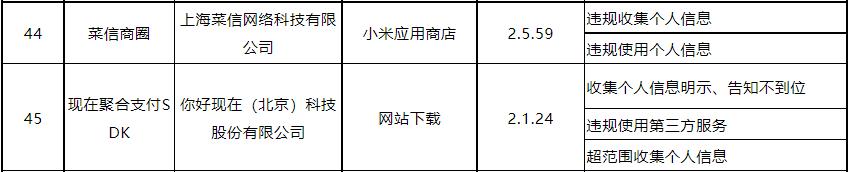 菜信、你好现在两家支付服务商APP被工信部点名