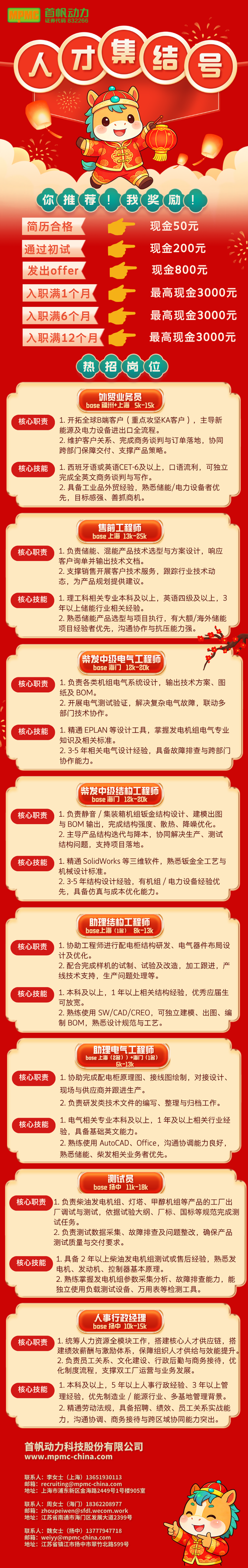 欢迎广大投资者推荐人才加入首帆动力!奖励多多哦!