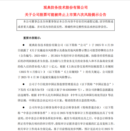 *ST观典解读:关于公司股票可能被终止上市第六次风险提示公告等3份公告