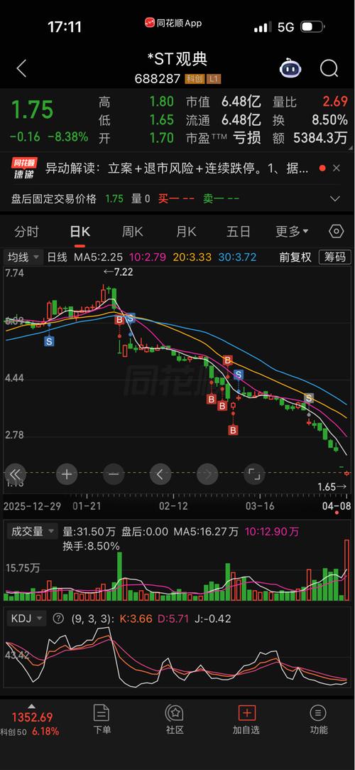 $*ST观典(SH688287)$超级烂股,止跌回升;今日进场,前途光明