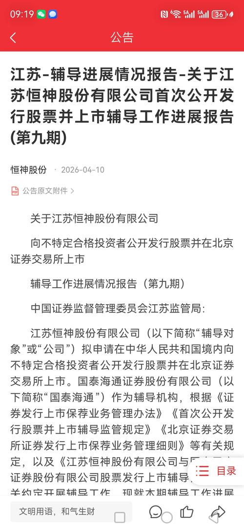 公告 关于江苏恒神股份有限公司首次公开发行股票并上市辅导工作进展报告(第九期)