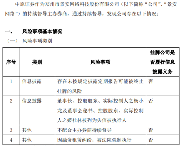 公告 景安网络:中原证券关于郑州市景安网络科技股份有限公司收到自律监管措施及纪律处分、可能被终止挂牌进展、未按期预约半年报等风险提示性公告