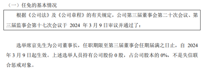 挖贝网3月11日,大唐融合(833035)发公告称,根据《公司法》及《公司章程》的有关规定,公司第三届董事会第二十次会议、第三届监事会第十七次会议于2024年3月9日审议并通过了:选举席京为公司董事长,聘任孙绍利为公司总经理,聘任张思炜为公司财务负责人,任职期限至第三届董事会任期届满之日止,自2024年3月9日起生效。聘任徐军为公司常务副总经理(协助总经理负责公司日常经营工作),任职期限至第三届董...