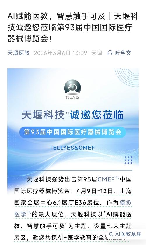 $天堰科技(SZ833047)$ 一、天津天成泰克科技有限公司(天成泰克)(天堰科技全资子公司)。 朝阳医院临床医学人才综合能力提升项目(04包)中标时间:2026-03-24中标金额:389.2万元产品:AI数字化心肺复苏模拟人、医学实训设备儿科技能/妇科检查一体化实训室(湖北)中标时间:2026-01-29中标金额:251.55万元产品:智能分娩模拟人、智能化生长发育评估系统襄阳职业技术学院实...