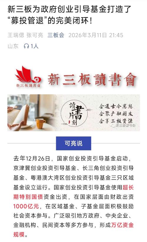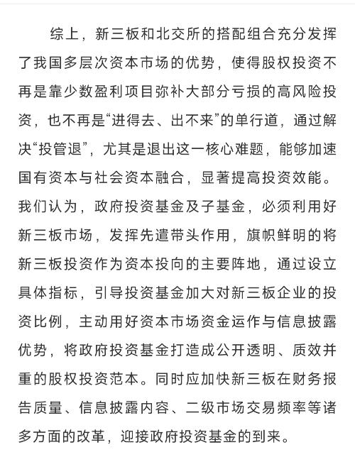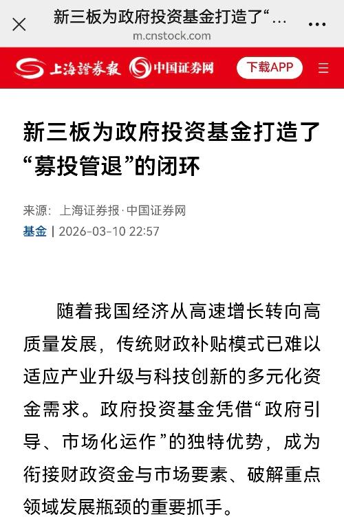 $天堰科技(SZ833047)$$雅港复材(SZ875076)$$瑞达恩(SZ430172)$ 研读一下这篇文章: 政府投资基金要深度介入新三板了。 新三板不再是边缘和附属了。 新三板将成为“专精特新小巨人”企业的专用孵化、培养基地。 新三板的大宗交易也会越来越多,那是有机构在交换筹码,有的出,有的进,不能都视为利空了。 国家级专精特新小巨人企业(比如瑞达恩),尤其是国家级重点专精特新小巨人企业(...