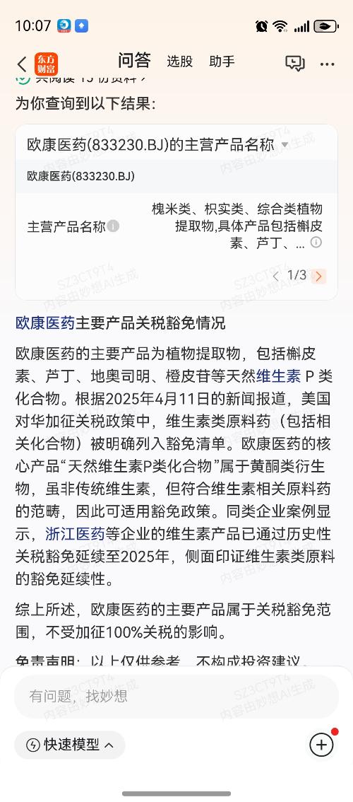 $欧康医药(SZ833230)$欧康医药不在加征关税 范围内!