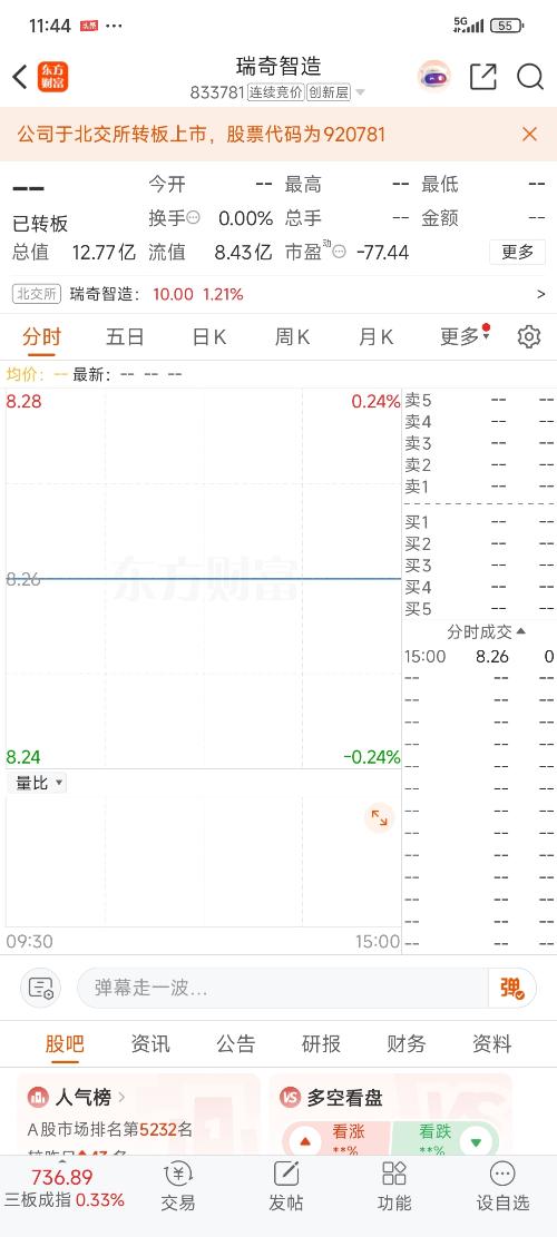 股价红红财源滚滚 发表于 10-01 11:44 633次浏览 $瑞奇智造(SZ833781)$快跑! 评论2