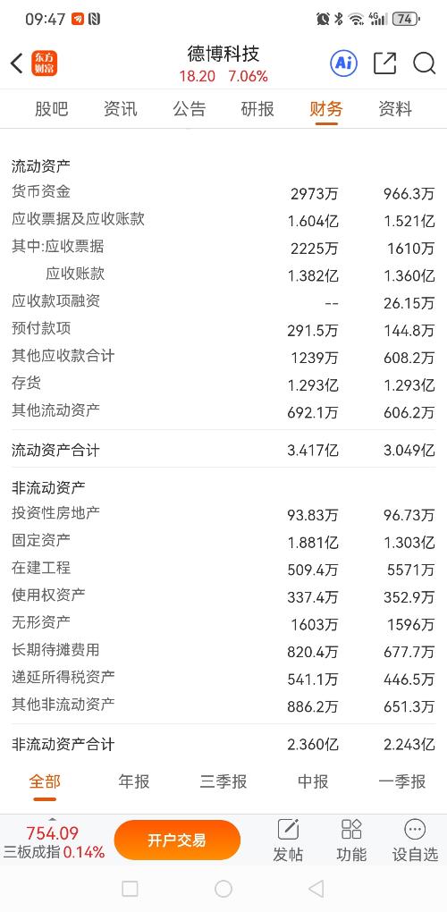 $德博科技(SZ834377)$ 这公司财务基本面一般,特别流动性问题大,评价主要指标之一,应收账款+存货占比超流动资产84.5%,一般至少在70%以内。。。