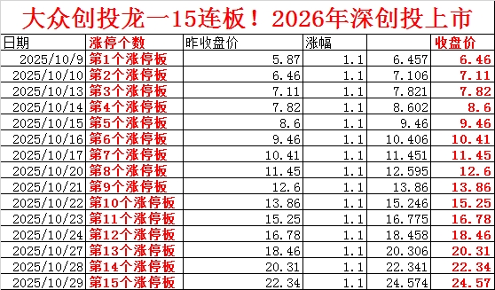 大众公用通过深创投持有新开莱!明天7%高开,瞬间涨停7.82元!3板定龙头!新开莱龙一15板!
