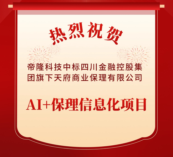 邀您观看:喜报!帝隆科技携手陕西宝鸡财投控股,共建数智化综合金融业务平台 近日,帝隆科技与宝鸡财投控股正式达成合作,共同推动宝鸡财投旗下商业保理、融资租赁及小额贷款三大核心业务的AI+数字化升级,打造领先的数智