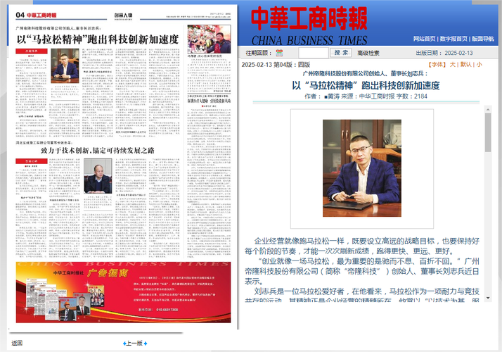 岁月如歌,笃行致远。 回望2025,每一笔勾勒, 都镌刻着帝隆人锐意创新的坚定足迹; 每一处留白, 都蕴藏对“AI+产业”深度融合的深邃思考。 董事长刘志兵荣登《中华工商时报》 2月13日,帝隆科技创始人、董事长刘志兵先生的创业故事《以“马拉松精神”跑出科技创新加速度》登上国家级财经媒体《中华工商时报》。 越秀区委书记郭昊羽走访调研帝隆科技 3月3日,广州市越秀区委书记郭昊羽、区政协主席郭环、区委...
