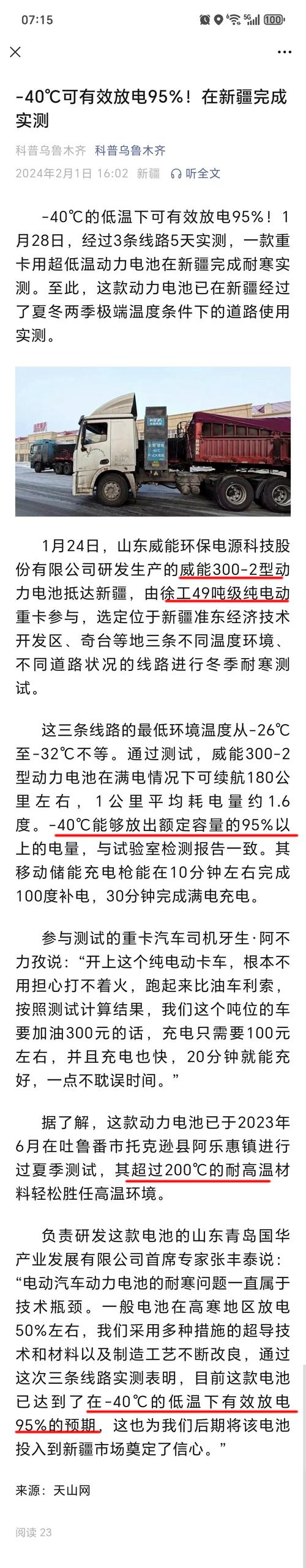 公司24年1月正值严寒季节,威能超低温电池样品在乌鲁木齐开展49吨重型卡车负载测试通过,同年获得订单,25年开始陆续交付产品,25年底乌鲁木齐,北京、潍坊三地开始大举招聘人员。这是公司26年欣欣向荣的发展表现,公司电池耐高温200度,低温零下40度实测可放电95%。