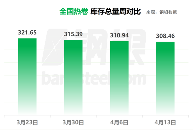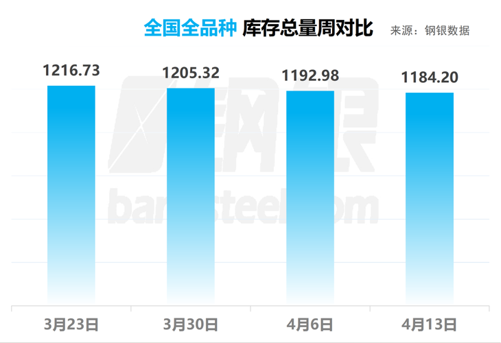 4月13日 全国钢市库存环比减少0.74%