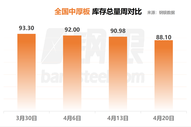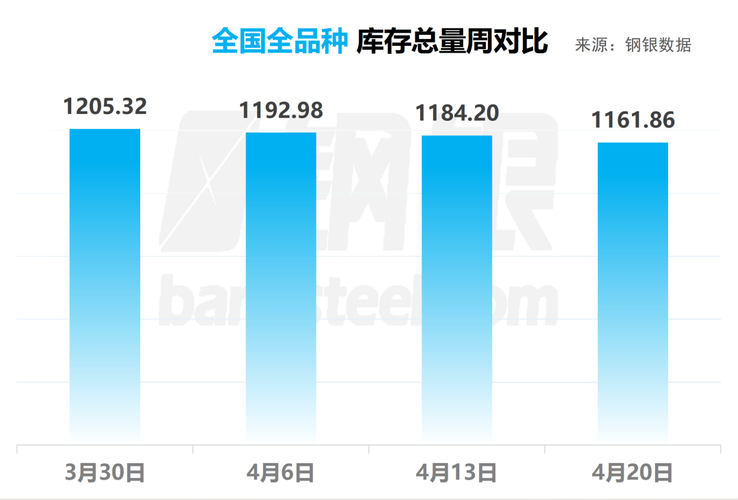4月20日 全国钢市库存环比减少1.89%