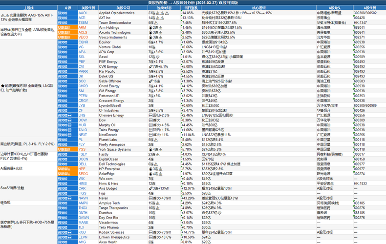 美股强势股今日映射分析-20260327