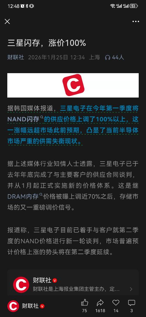 美股存储芯片板块大涨全解析(2026年4月最新) 一、核心催化:巨头官宣Q2大幅提价,行业景气度彻底引爆 你截图里的消息正是本轮大涨的直接导火索: -DRAM:经历11个月连涨后3月暂稳,但三星、SK海力士已正式通知客户,二季度DRAM价格环比大涨40%-45%,部分机构预测实际涨幅可达58%-63%; -NAND闪存:连续15个月上涨,3月单月环比涨幅就达33.95%,Q2预计继续涨70%-75...