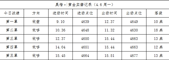 昊楷v实磐回顾|4.06(周一)黄金操作总结: 第一:4639-4649洛带10点 第二:4648-4630洛带18点 第三:4650-4663洛带13点 第四:4651-4663洛带12点 第五:4664-4677洛带13点 日内五连胜,累计斩获66点莉润,多空双向精准把握,行情尽在掌控! #实盘记录#