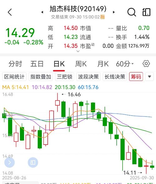 $旭杰科技(SZ836149)$14.11出现对子价格了,应该他调整的差不多了