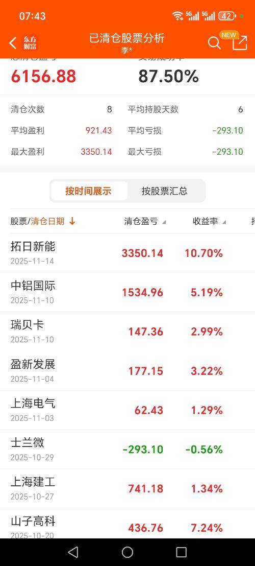 个人感觉炒股很简单,不要贪心,买入点最重要,以下是我的个人战绩,还有个长城军工被套了三周了,估计要解封了。有刚入股市的可以交流一下。以下附上我的战绩。#投资随笔#