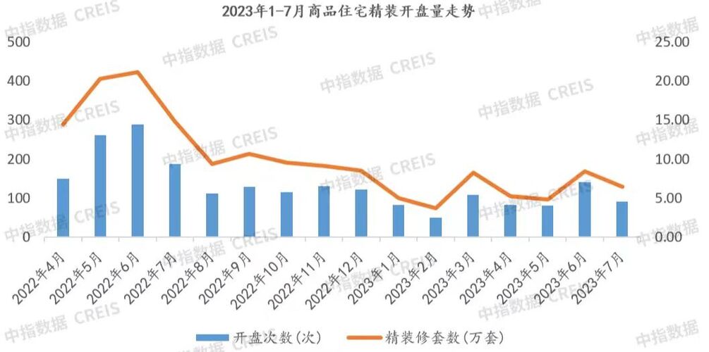 近日,中指研究院对外发布1-7月家居月报,报告显示,前7月全国开盘量同比下降5成,精装率同比提高。根据中指数据家居版监测显示,2023年1-7月,全国重点监测的近300城精装修楼盘开盘数量为638个,同比下降51.3%;精装修房源套数为42万套,同比下降61.9%。其中7月精装开盘91个,环比下降35.9%。责编:李霞编审:莫非出品:城楼财经