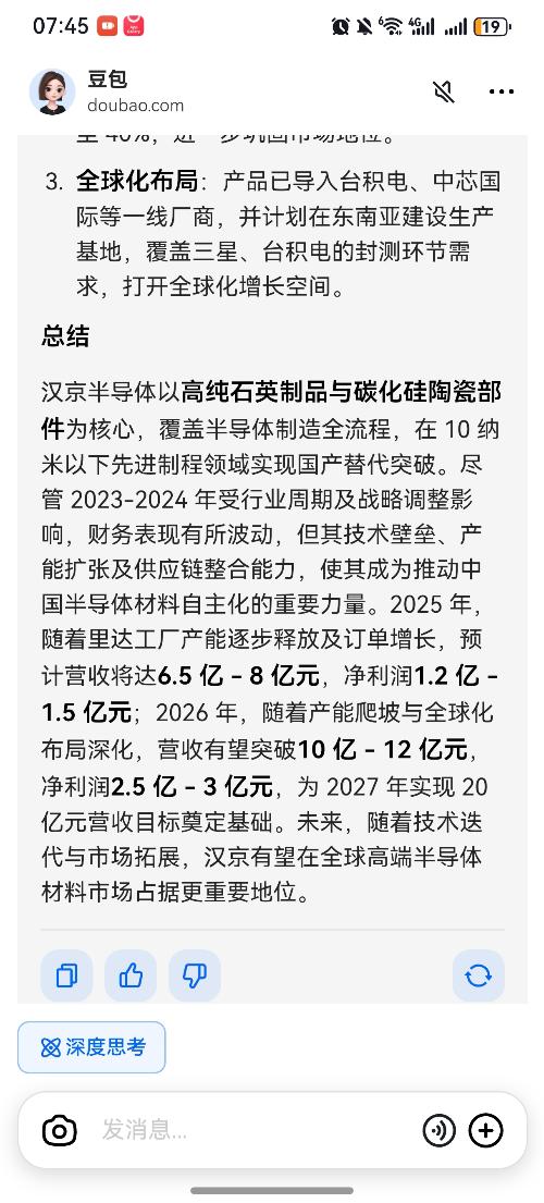$正帆科技(SH688596)$正帆科技控股子公司汉京半导体主营碳化硅和高纯石英产品。实缴资本两亿多,交社保的员工600多人。预计2025营收6-8亿,利润1.2-1.5亿,2026年营收10-12亿,利润2.5-3亿。已导入中芯国际和台积电等国内国际大客户。$新洁能(SZ838147)$$碳化硅(BK0977)$
